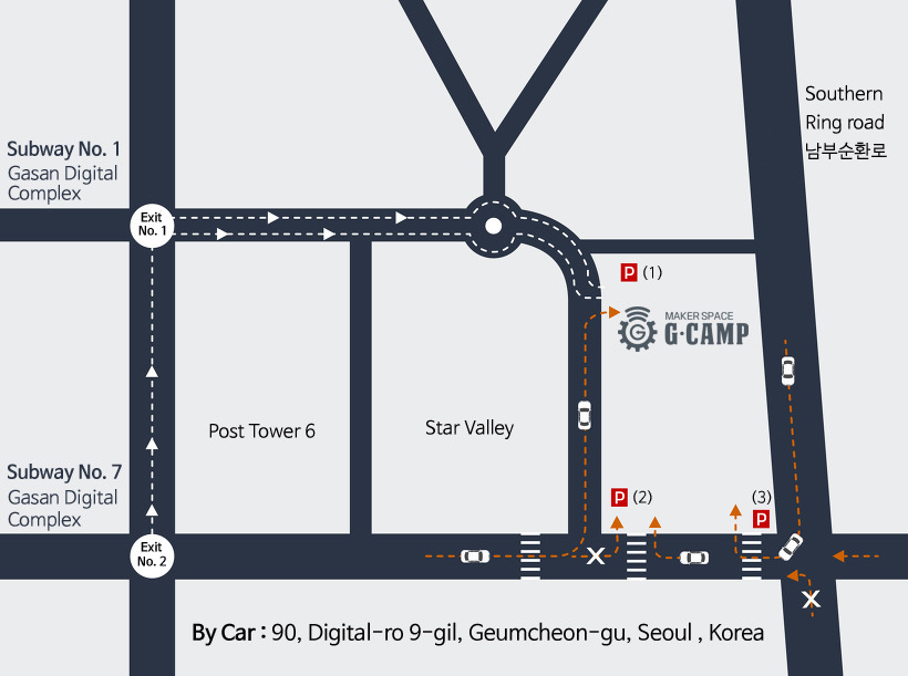 Address : 90, Digital-ro 9-gil, Geumcheon-gu, Seoul , Korea (For taxi driver, "금천구 스타밸리")